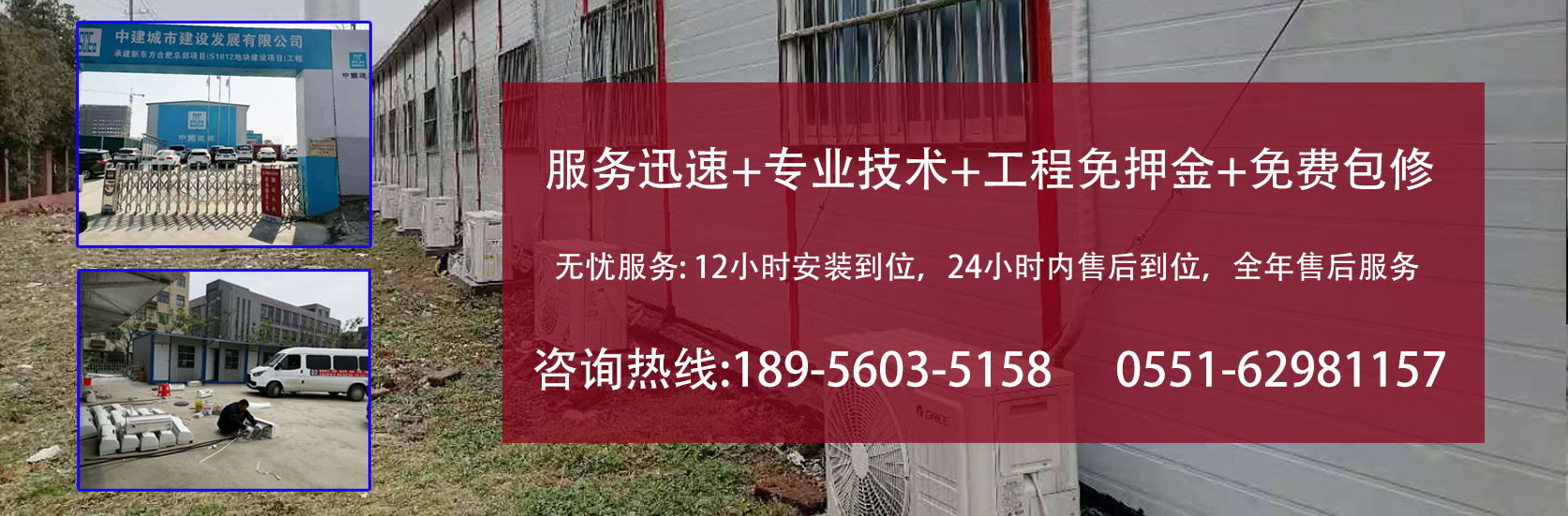 安裝人員經驗豐富,技術熟練。中為公司始終保持“服務第一,效益第二”的經營理念,對空調使用過程中出現故障,堅持12小時解決問題,讓每一位顧客滿意!特別是工地,如果空調壞了,夏天室內溫度接近45攝氏度無法辦公和休息。公司從事空調租賃以來,一直堅持返修不過夜,贏得了廣大顧客的充分信賴!。 服務電話:189 5603 5158 (0551)6298 1157